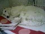 ボルゾイに限ったことではないだろうけど、ピースはよく伸びをする。寝起き、くつろぎの後、外に出る時、部屋と部屋をつなぐ段差を降りる時、寝床に入る前など。その時お尻を突き出し、尻尾も上げるので、おならが出やすい(注:その都度おならしてるわけではない)。たいがいスカシなんだけど。座っている時は音が出るけど(前にトレーナーが来てる時、オスワリでブビィ〜と鳴った時は笑った)、今回伸びの姿勢で珍しく音が出てた。