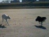 写真はすでに疲労がみえるピースと、まだまだやる気満々のクーキー。