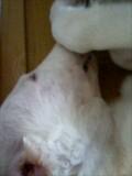 まぁ通りの向こうじゃ仕方ないし、子犬だから毛も短いし、白いし、都会とは言い過ぎの下町だ。