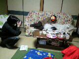 うちは1時間以上遅れて到着。熱烈歓迎を受けてピースは尻尾が入り気味だったけど、30分もすると慣れてました。どうやらデーンも平気になったみたい? 絡みはしなかったけど、同じ空間に居ることができました。