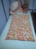車庫のトイレはトレーを使わず、フロアシートの端切れにトイレシートを重ねたものと、ただトイレシートを敷いただけの2つある。