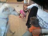 写真は先日のドッグカフェでの。