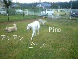ピースはアンアン&ビビアンちゃんにスッゴく好かれたんだけど、ピースはご遠慮な気分だったみたいで(^_^;)。それを知ってか知らずか、アンちゃんがピースを遊びに誘うとPinoちゃんが間に入り、「まぁまぁ、ピースはやめとけ」とアンちゃんの相手を自ら買って出てた。野生犬Pinoちゃんと言われる割に、なかなかどうしてやるじゃない。