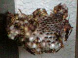 その翌日には幼虫や成虫、蜜が下に落ちていて、巣もなんとかきれいに取り除けた。