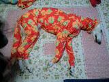 ボルゾイ用の服は一般にはあまり売られてなく、こんな全身スーツともなると見たことない。原型の持ち主であるフェリーも作ってもらったのだとか。