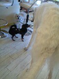 写真はカフェで勇敢なチワワとご挨拶中。