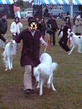 チャンピオンクラスのメスは最後から2番目で、その待ち時間はベビーアトラクションから始まっておよそ3時間後。長い長い。それだけ出陳犬がいたわけだ。お犬様も待ちくたびれたろうけど、人間様もヘロヘロで、早く終わってくれよと、どうでもよくなっちゃった。テンションの維持時間はお犬様並み。
