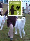 たくさんのボルゾイにピースも興奮気味で気もそぞろ。パピーボルに遊びを仕掛けるし、ハンドリングの練習をしようとすれば思いっきり引っ張って駆けようとするし。何より雨でぬかるんでいるから私が滑りそうで危ない。そして知り合いにおやつをねだることも忘れない。