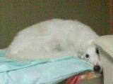 起きるとようやく枕元へやってくるのだが、その後が渋い。今まで私が寝ていたベッドでくつろぎ体勢に入る。散歩に行く支度をしてもなかなか来ない。