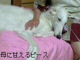 その犬を連れているのはいつもお母さんと娘さんの二人で(確かめたわけではないが、たぶん親子)、他の犬を見ると(つか、この場合ピースなのだが)ハウハウ言って近づこうと興奮する犬を一生懸命引っ張って食い止めてる。もしくは、飼い主が犬よりも先にピースに気づくと会わせないようコースを変えたりする。