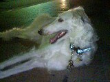 話は変わって、今夜の散歩中ラッキー(パピヨン)に会ったのだが、お母さんが言うには、この近所になんとボルゾイが来たらしい! 珍しいから間違ってはいないと思うということだったが、ホントだったら嬉しいな。茶白の子らしいけど・・・ワクワクする。