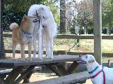 ピースは一生懸命遊びに誘ってたけど、怖がっちゃったり相手にされずでお気の毒。つまんなそうなので、1回ランを出てブラブラして再度戻ると柴と白ラブが。これは遊べるなと再投入。予想通り遊べた。