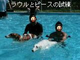 ピースは泳ぐのは2年ぶり? ボモパパに抱えられスイミングレッスン。ピースには悪いけど必死な顔がおかしかった(≧▽≦)