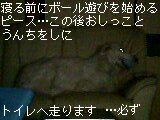 写真、見えにくいけど寝るために電気を消した後に始まる行為。部屋中を駆け回って5分から10分ボールで遊ぶ。でないとうんちが出ないみたい。そうしてトイレを済ますとさっさと寝る。