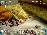居間ではこたつに入っている私のそばに、体の一部をべったりとくっつけ、時には膝枕したりと、眠るしぐさがとてつもなくかわいい。このまま一緒に寝たくなるほどだ。いや、実際何回かそのまま朝まで寝てしまったこともある。まぁ体が痛くて寝た気がしないばかりか、風邪っぽい症状も出て、こりゃあいかんと心を鬼にするわけだが。