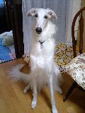 ピースはダイエットしてほっそりしてた。これがボルゾイの正しい体型なのだが、もうちょっと太い方がいいなぁ。なんだか顔も変わった感じで、犬っぽい。犬だけど。犬舎生活のせいかな。犬舎の匂いもついてるし。頑張ったね、ピース。