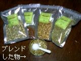 4種類のハーブをブレンドして煎れて、スプーン1杯くらいをフードにかけたり飲み水に入れるというもの。出したティーパックは傷につけてもいいらしいし、ハーブをミルにかけてそのまま与えてもいいらしい。