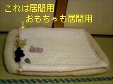 もうひとつはマットレスタイプで、カドラーにセットするクッションみたいな感じ。これはサークルの中のベッドに。ふたつあるので、始めは台所の指定席用にしてみたたけど、元の布団の方が気に入っている様子なので、予備にとっておくことにした。