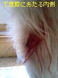 その擦り傷、最初は左後ろ脚の小さなものだけかと思い、洗ってイソジンをつけておいたのだが、しばらくすると内股が血で真っ赤!