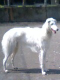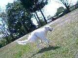 ここはボルコミュで知ったのだが、ランが広い広い。おまけに平日とあり、貸し切り状態。ピースも喜んで(?)思いっきり疾走。と、しばらくすると同じボルゾイが現れた。とたん、おとなしくなる…。どうやらボルゾイ仲間と待ち合わせてのラン利用らしく、次々とボルゾイ登場。6〜7頭いただろうか。